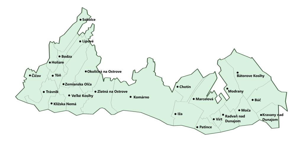 Zahŕňa územie 24 obcí okresu Komárno, z toho 1 so